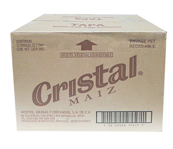 ACEITE DE MAÍZ, MARCA CRISTAL, CAJA CON 12 PIEZAS DE 1 LT.