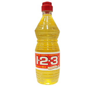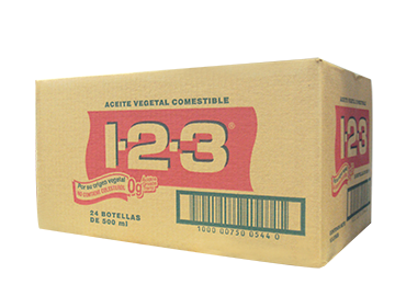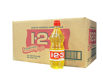 ACEITE VEGETAL, MARCA 1-2-3, CAJA CON 24 PIEZAS DE 500 ML.