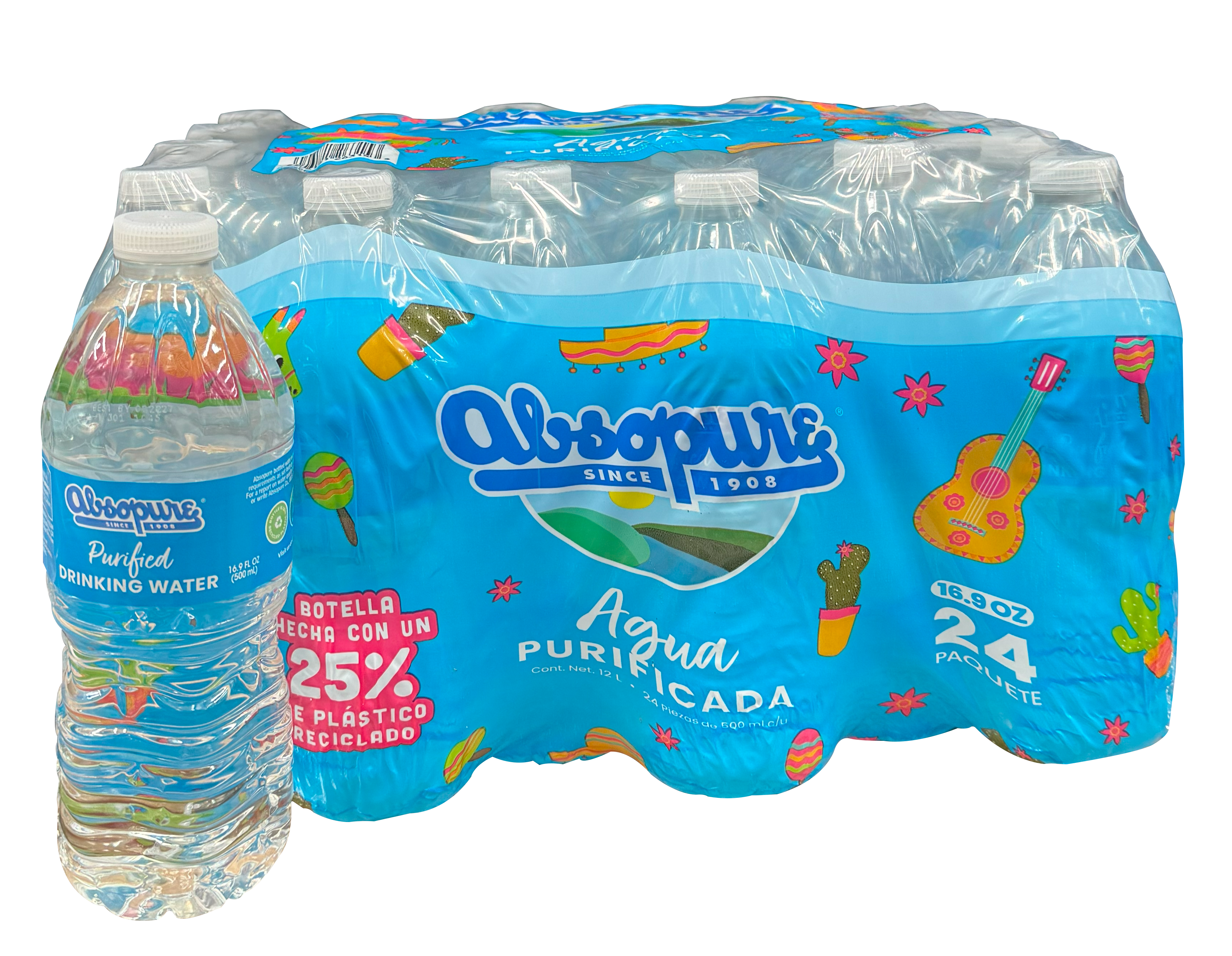 AGUA, MARCA ABSOPURE, PAQUETE CON 24 PIEZAS DE 500 ML.