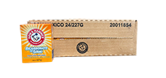 BICARBONATO DE SODIO, MARCA ARM HAMMER, CAJA CON 24 PIEZAS DE 227 GR. CADA UNA.