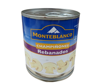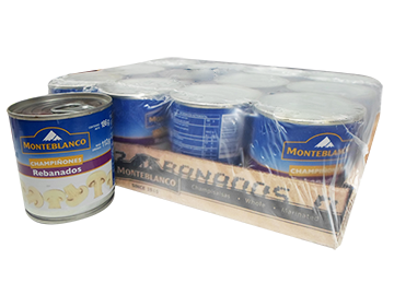 CHAMPIÑON REBANADO, MARCA MONTEBLANCO, CAJA CON 12 PIEZAS DE 186 GR. CADA UNO.