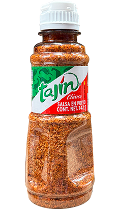 CHILE EN POLVO CON LIMÓN, MARCA TAJÍN, CAJA CON 12 PIEZAS DE 142 GR. CADA UNA.
