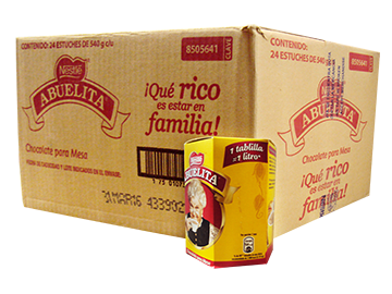 CHOCOLATE ABUELITA, MARCA NESTLE, CAJA CON 24 PIEZAS DE 540 GR. CADA UNA.