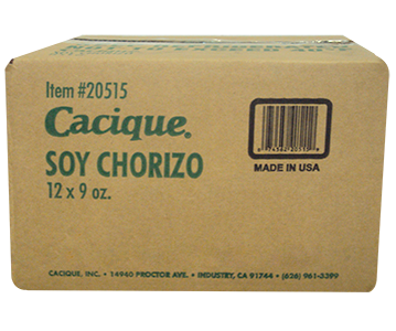 CHORIZO DE SOYA, MARCA CACIQUE, CAJA CON 12 PIEZAS DE 9 OZ.