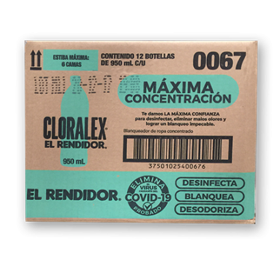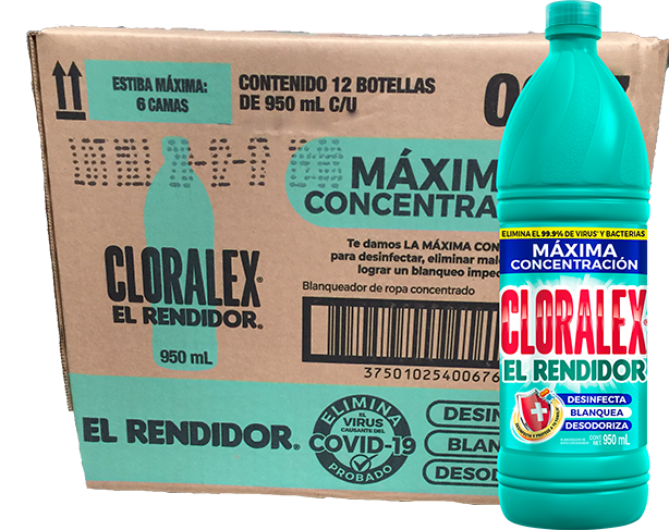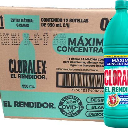 CLORO, MARCA CLORALEX, CAJA CON 12 PIEZAS DE 950 ML.
