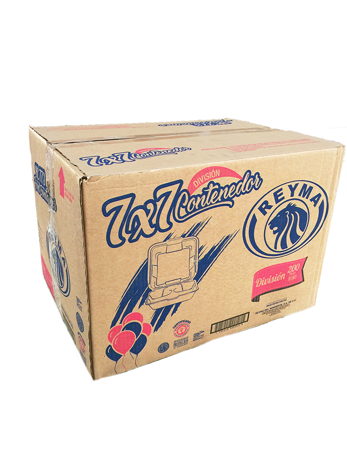 CONTENEDOR 7X7 CON DIVISIÓN, MARCA REYMA, CAJA CON 4 PAQUETES DE 50 PZ.