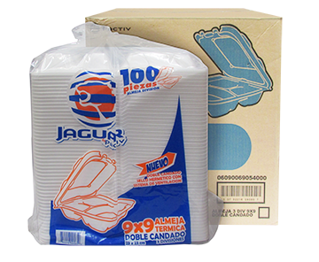CONTENEDOR 9X9 CON DIVISIÓN, MARCA JAGUAR, CAJA CON 2 PAQUETES DE 100 PZ.
