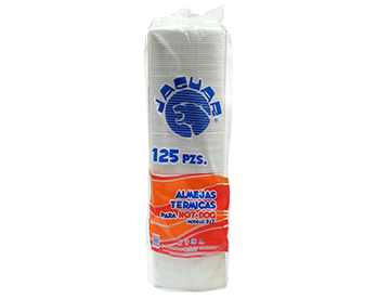 CONTENEDOR HOT-DOG, MARCA JAGUAR, CAJA CON 4 PAQUETES DE 125.