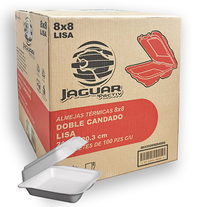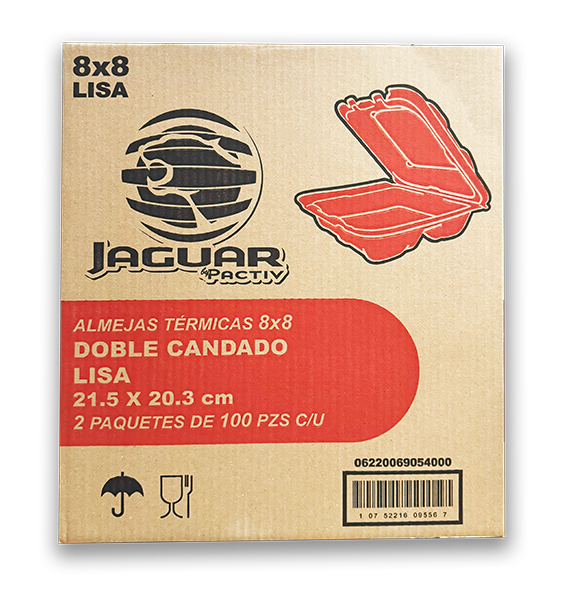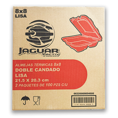 CONTENEDOR 8X8 LISO, MARCA JAGUAR, CAJA CON 2 PAQUETES DE 100 PZ.