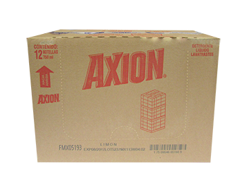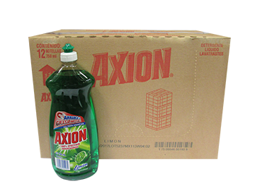DETERGENTE LÍQUIDO LAVATRASTES, MARCA AXION, LIMÓN, CAJA CON 12 PIEZAS DE 750 ML.