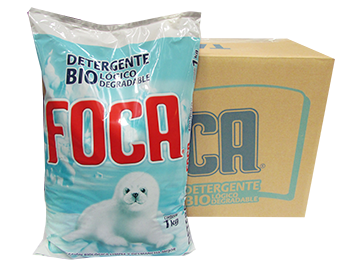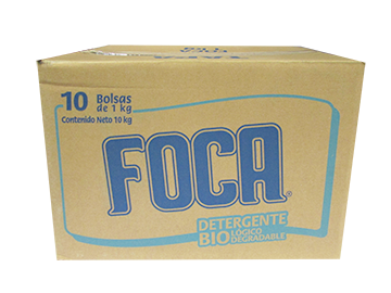 DETERGENTE EN POLVO, MARCA FOCA, CAJA CON 10 PIEZAS DE 1 KG.