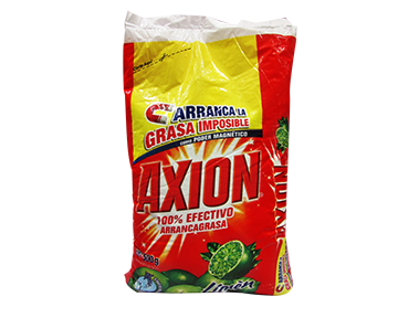 DETERGENTE EN POLVO LAVATRASTES, MARCA AXION, LIMÓN, PAQUETES CON 24 PIEZAS DE 500 GR.