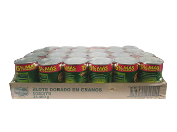 ELOTE DESGRANADO, MARCA DEL MONTE, CAJA CON 24 PIEZAS DE 400 GR.