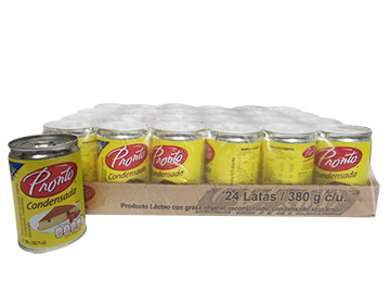 LECHE CONDENSADA, MARCA PRONTO, PAQUETE CON 24 PIEZAS DE 380 GR.