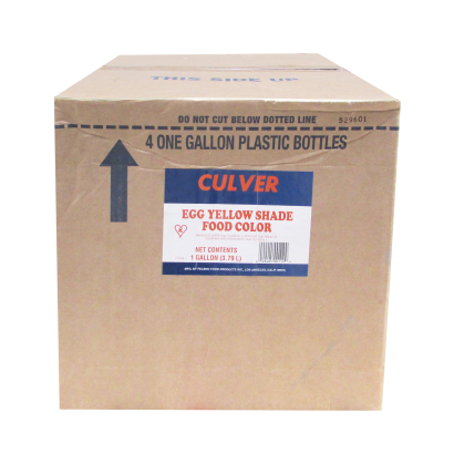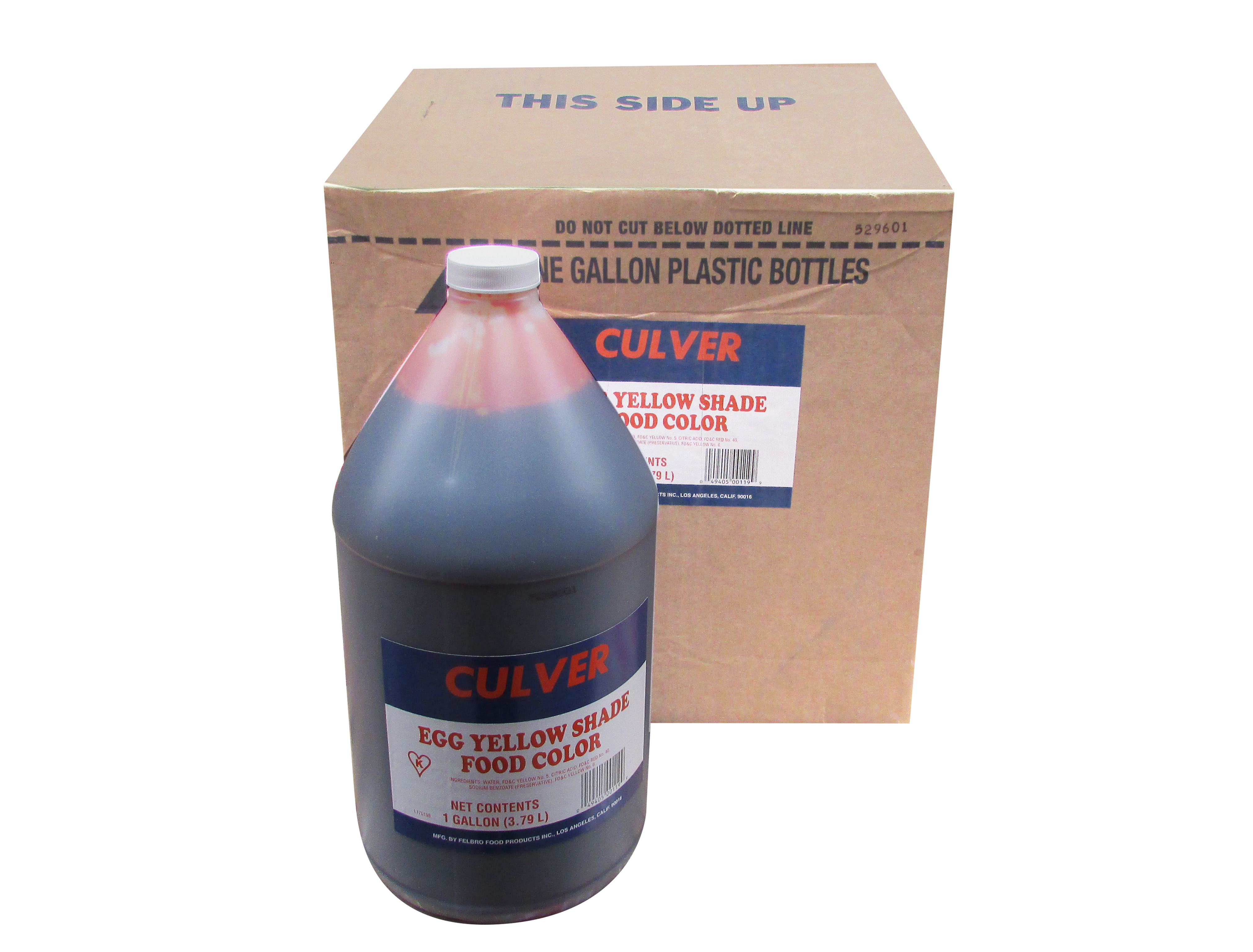 MEZCLA COLORANTE PARA ALIMENTOS AMARILLO, MARCA CULVER, CAJA CON 4 PIEZAS DE 1 GL.