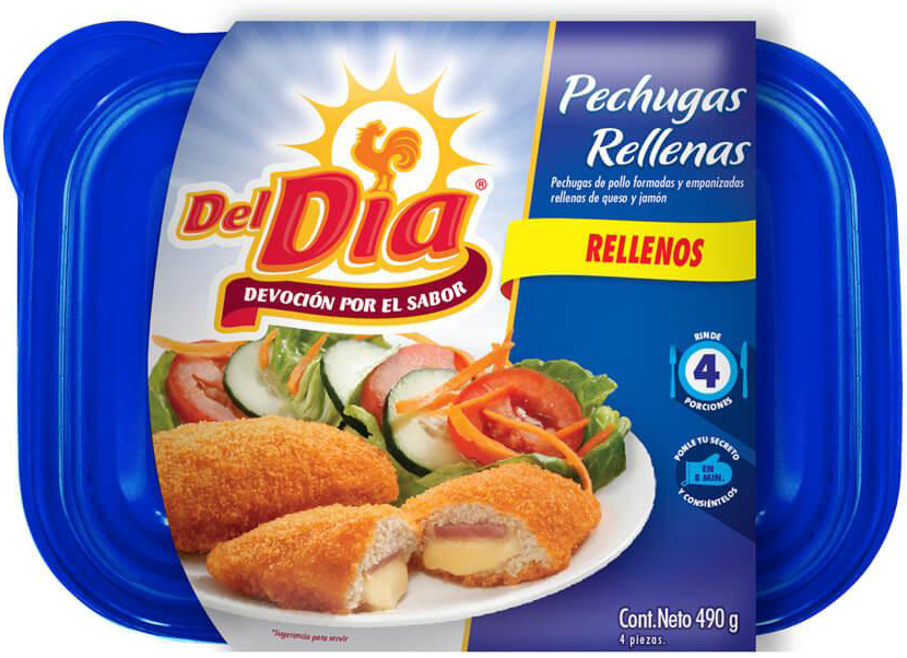 PECHUGAS RELLENAS DE QUESO Y JAMON DEL DIA 12 PAQUETES DE 490 GRAMOS CADA UNO