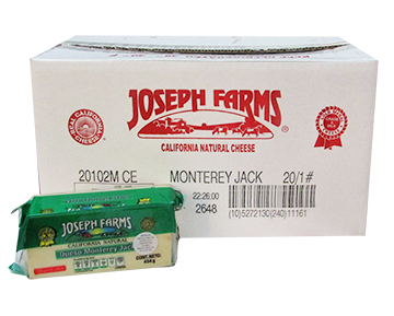 QUESO MONTEREY, MARCA JOSEPH FARMS, CAJA CON 20 BARRAS DE 1 LB CADA UNA.