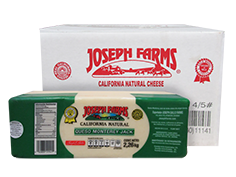 QUESO MONTEREY EN BARRA, MARCA JOSEPH FARMS, CAJA CON 4 BARRAS DE 5 LB CADA UNA.
