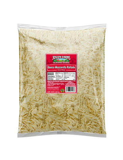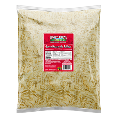 QUESO MOZZARELLA RALLADO JOSEPH FARMS 4 PIEZAS DE 5 LB CADA UNA