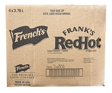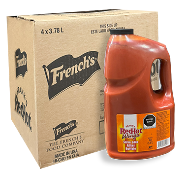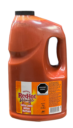 SALSA PARA ALITAS, MARCA RED HOT WINGS, CAJA CON 4 PIEZAS DE 3.78 LTS. CADA UNO.