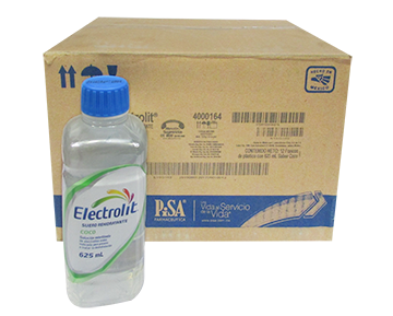 SUERO SABOR COCO, MARCA ELECTROLIT, CAJA CON 12 PIEZAS DE 625 ML.