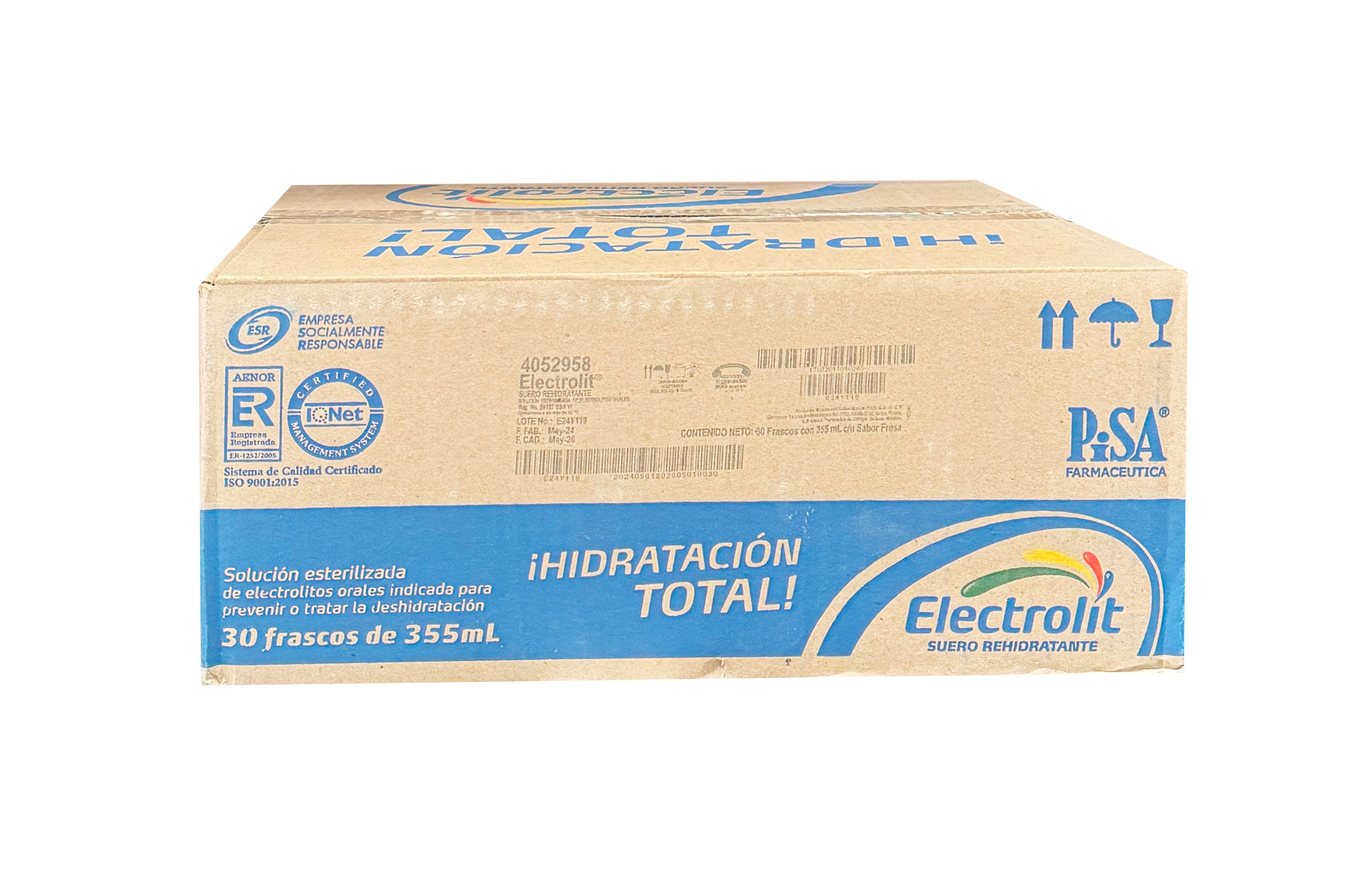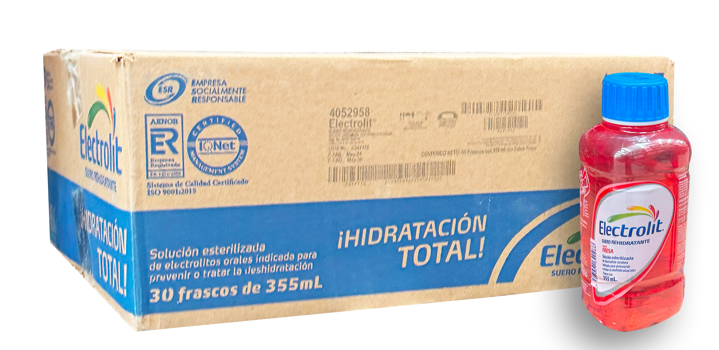 SUERO, MARCA ELECTROLIT, SABOR FRESA, CAJA CON 30 PIEZAS DE 355 ML.