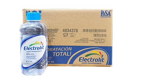 SUERO ELECTROLIT, SABOR MORA AZUL, CAJA CON 12 PIEZAS DE 625 ML. CADA UNO.