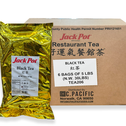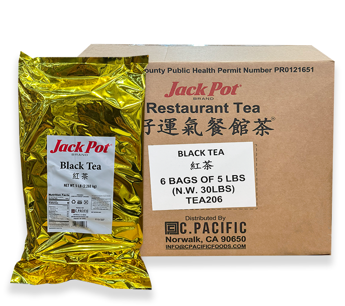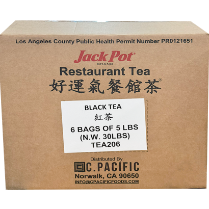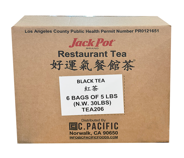 TÉ NEGRO, MARCA JACK POT, CAJA CON 6 PAQUETES DE 5 LB.