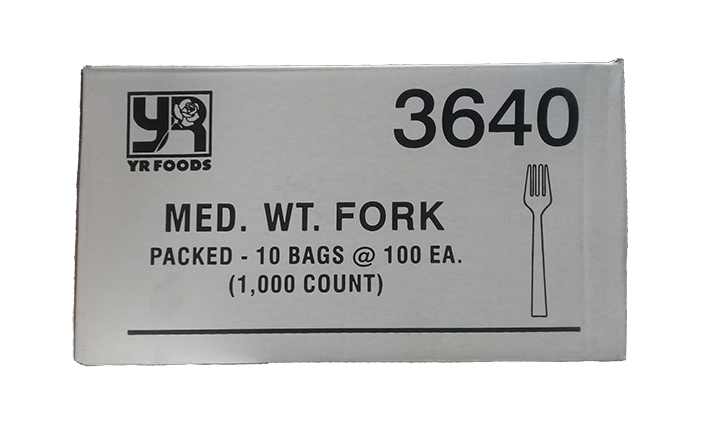 TENEDOR MEDIANO, MARCA YR FOOD, CAJA CON 10 PAQUETES DE 100 PZ.